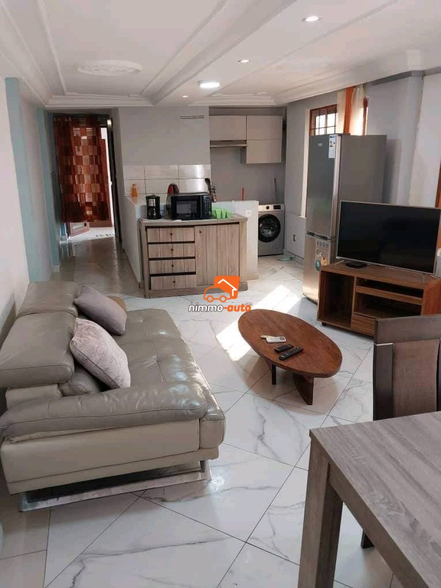 Appartement meublé haut standing Configurer comme suit : 2 chambres 2 Douches. ( Une avec benoire) 1 cuisine Américaine avec tout les ustensiles 1 salon Prix : 70000f la nuitée Réduction à partir de 10 jours