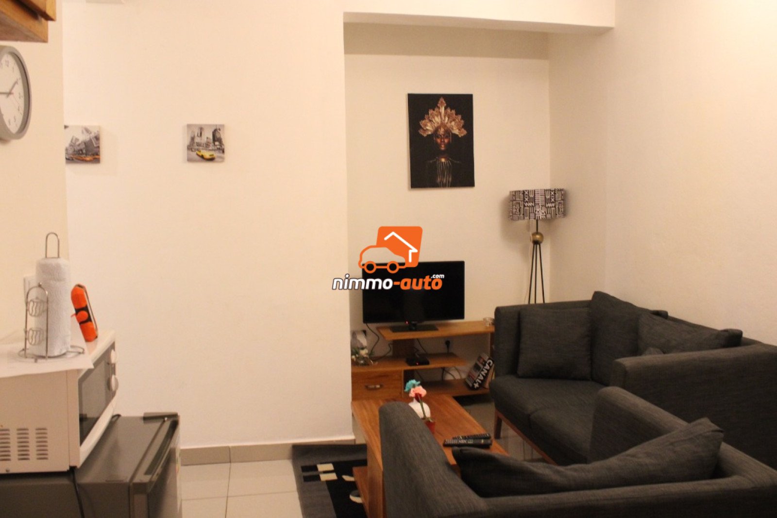 Studio américain 20.000F/ nuitée équipé d'1 salon américain , 1 chambre, 1 douche, 1 hall, parking, portail, Forage, bien situé à Mimboman, etc