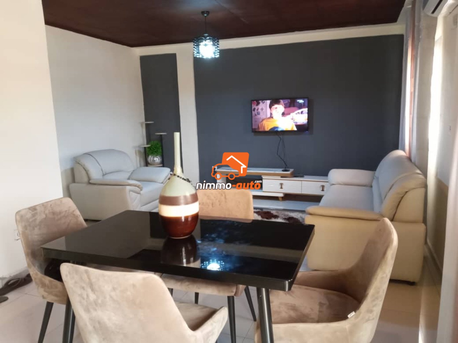 Appartement Meublé Haut Standing à louer à Biyem-Assi en bordure de route principale, avec toutes les Commodités de Confort pour illuminer votre séjour 💎(Soirée, Anniversaire,..) - 02 Chambres Climatisées avec Placard - Grand Salon Convivial Climatisé avec Jolie Salle à Manger - Cuisine Entièrement Équipée - Douche Confortable + Eau Chaude - Parking Sécurisé - 02 Balcons