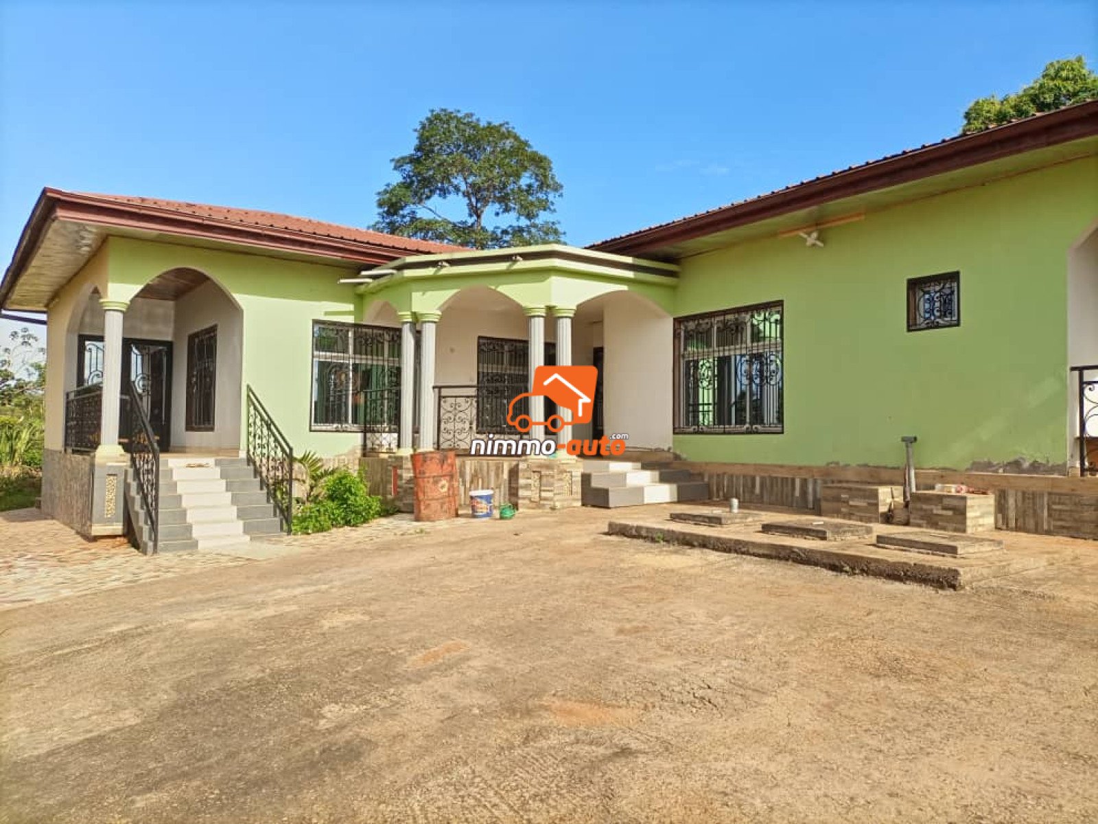 Magnifique villa nouvellement construite à vendre à Nkozoa 400m² titrée avec 3chambres, 1salon, 1salle à manger, 1cuisine, 2douches, 1magasin, 1forage aménagé dans la barrière