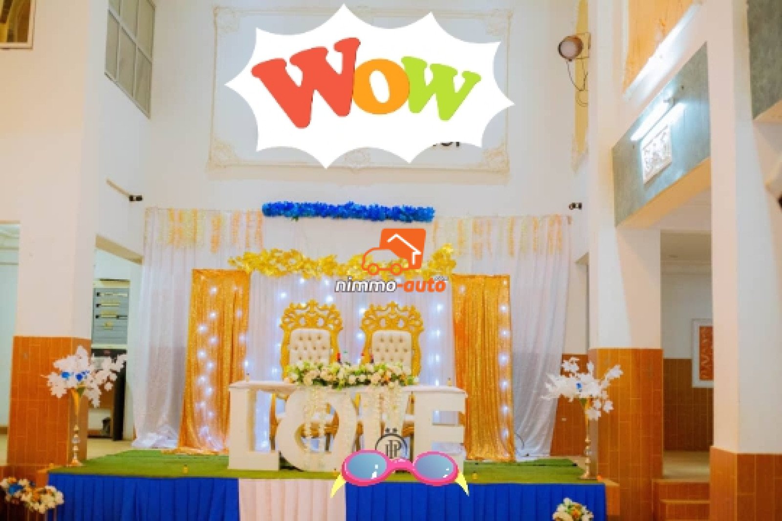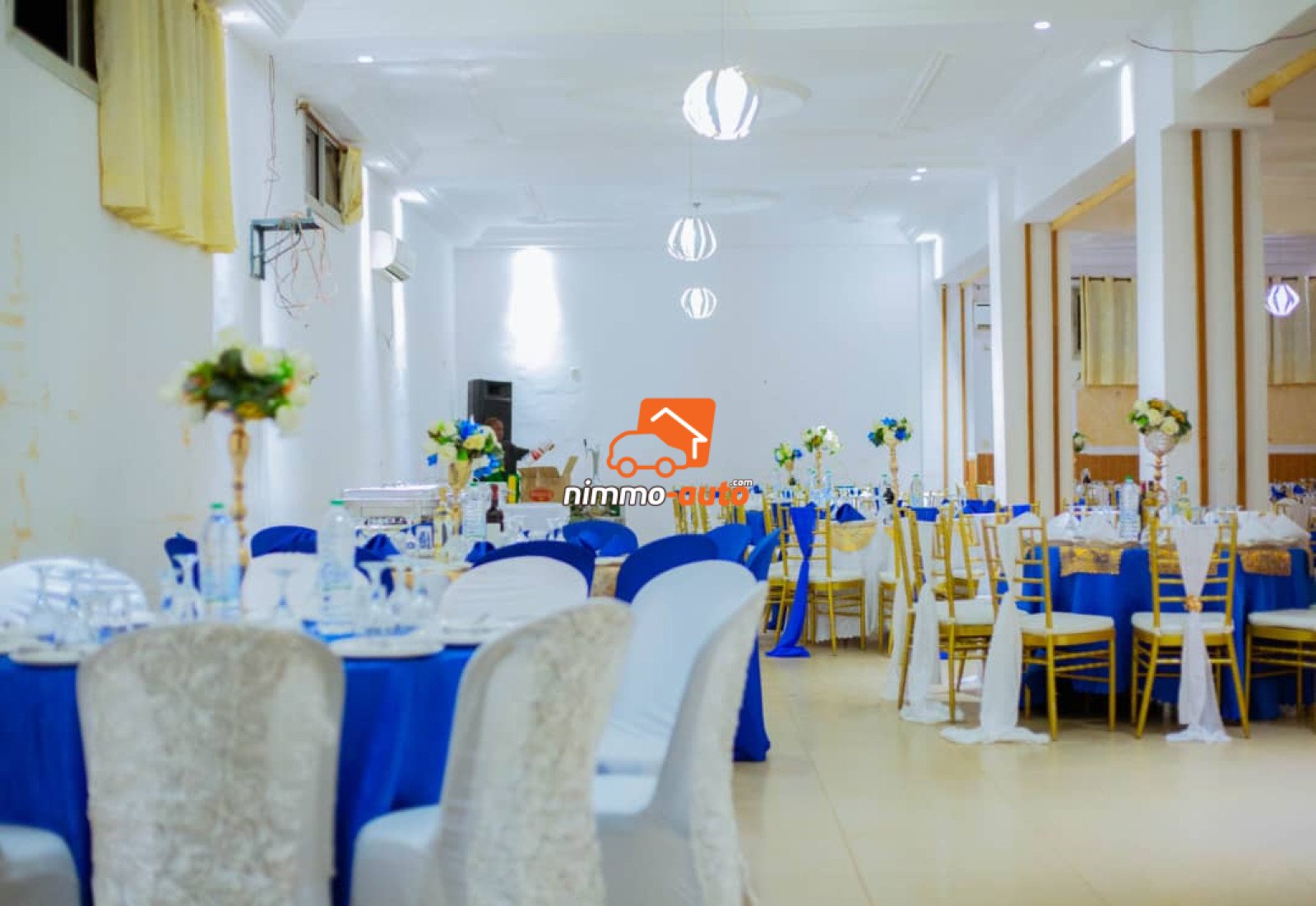 Salle avec une capacité d'accueil de 600 personnes Espace ouvert à l'entrée capacité d'accueil 300 personnes ( chaises offertes + tables sans décoration) à louer au Prix de 500.000 fcfa Salle Pour 400 places, avec DJ + imprésario + soins offerts gratuitement aux mariés pdt 1 semaine + chambre nuptiale + organisation d'enterrement de vie de jeune fille de la mariée avec 10invités autorisés + accès à la salle de sport avec coach pendant 2semaines + voiture offerte pour 3h de temps au service des mariés à louer au au prix de 01 million fcfa Avec déco standard + table + chaises + couvert 2.500.000fcfa Avec déco vip + tables + chaises + couverts 3.000.000f Espace ouvert au bord de la piscine capacité d'accueil 900 personnes (400 chaises offertes + tables sans décoration + tous les avantages du pack de la salle fermée) prix 1.000.000 fcfa Avec buffet, prix en fonction de la demande et du nombre d'invités