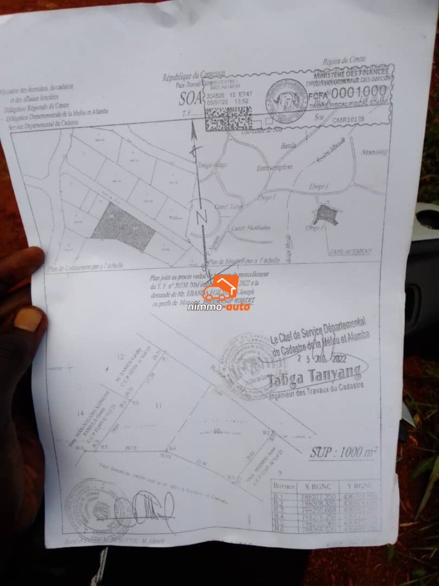Terrain Titré de 1000 m² en vente à nkolfoulou au prix de 18000frc / m². La zone est parfaitement accessible avec électricité et habitations