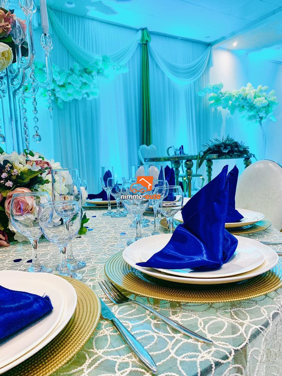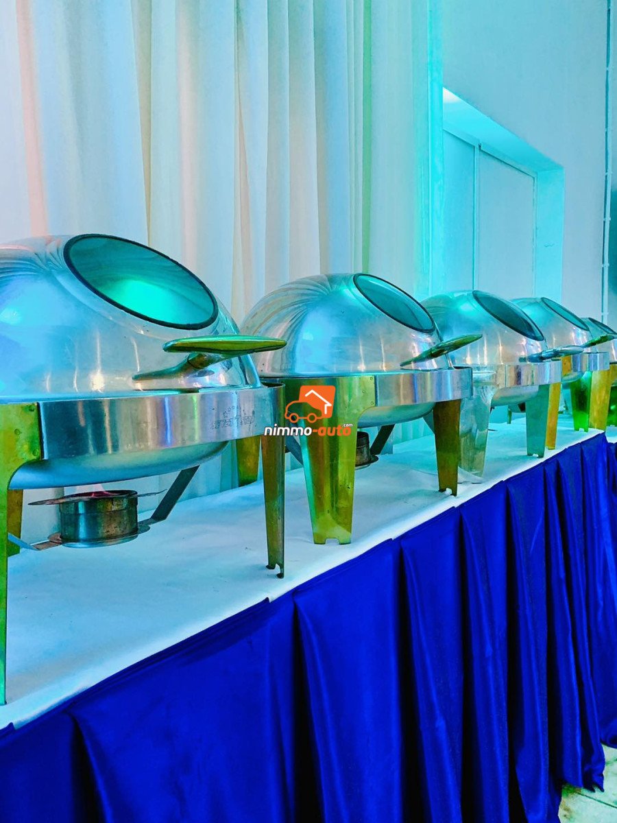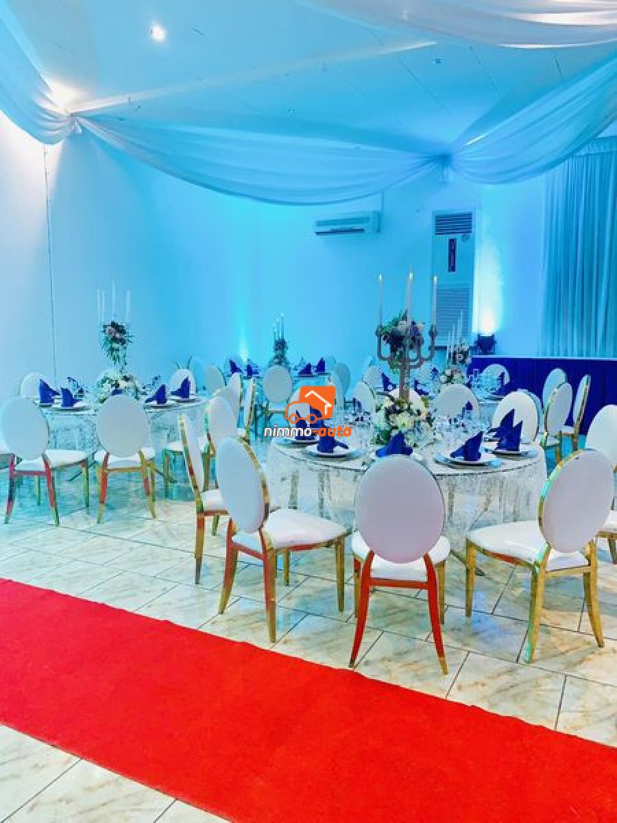 Magnifique salle de fête à louer à Efoulan. L'offre est de 400 places pour 2.500.000 FCFA. A partir de 7 millions avec déco + couvert + Buffet
