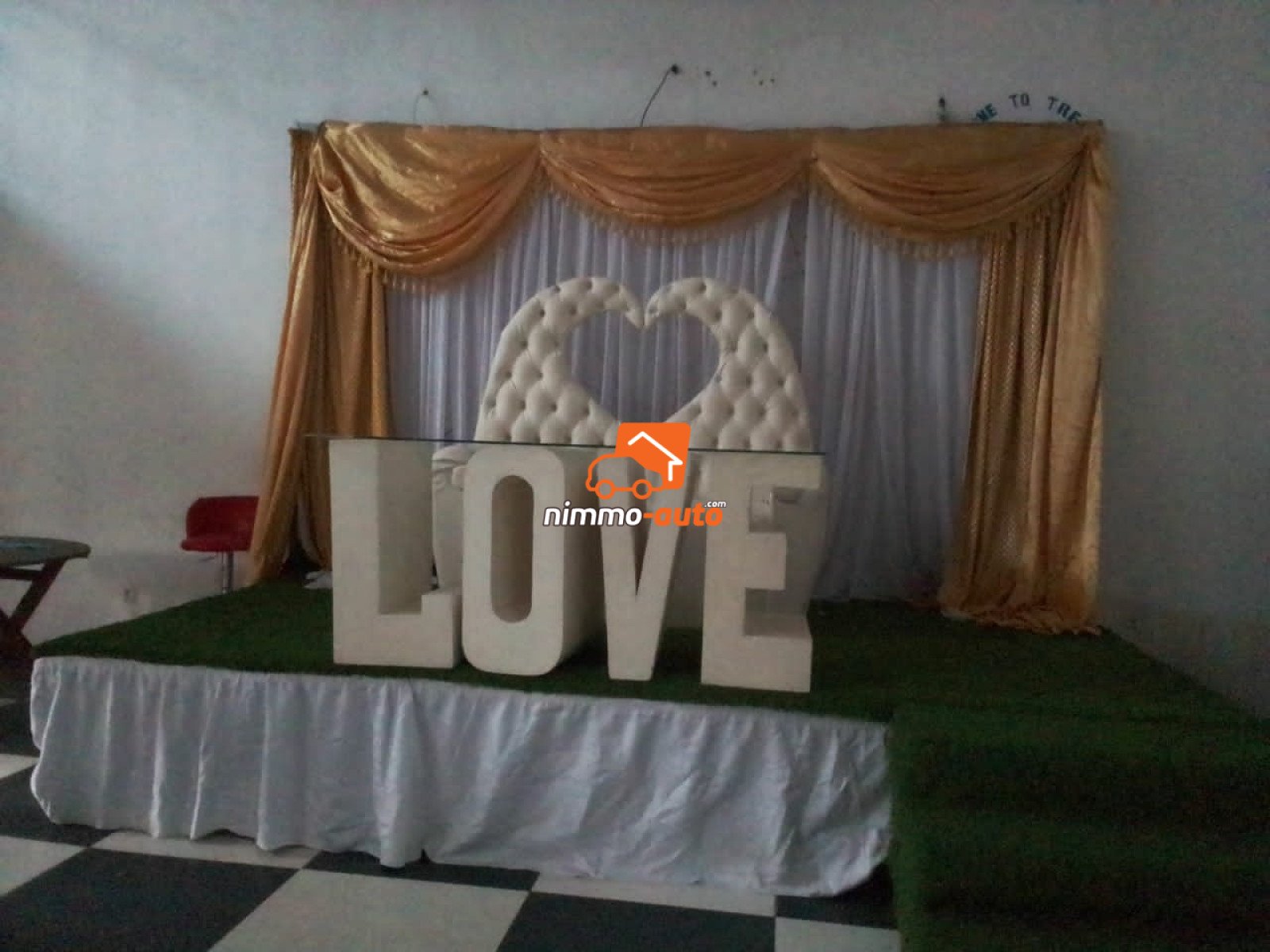 belle salle pour des services polyvalents (Cérémonies de mariage, anniversaires, réunions, etc) à PK 8 Parfaitement accessible 400 places et plus Décoration disponible Boissons disponibles (Boissons à table avec collations) Sono (système de musique avec Dj) Un vaste parking sécurisé Système de caméra. Climatisé Piscine à disposition des participants ou invités de l'occasion Un générateur automatique Toilettes (hommes/femmes) Un grand espace pour garer les bagages, les denrées alimentaires etc. Dans un site très calme et sécurisé 1600.000frs