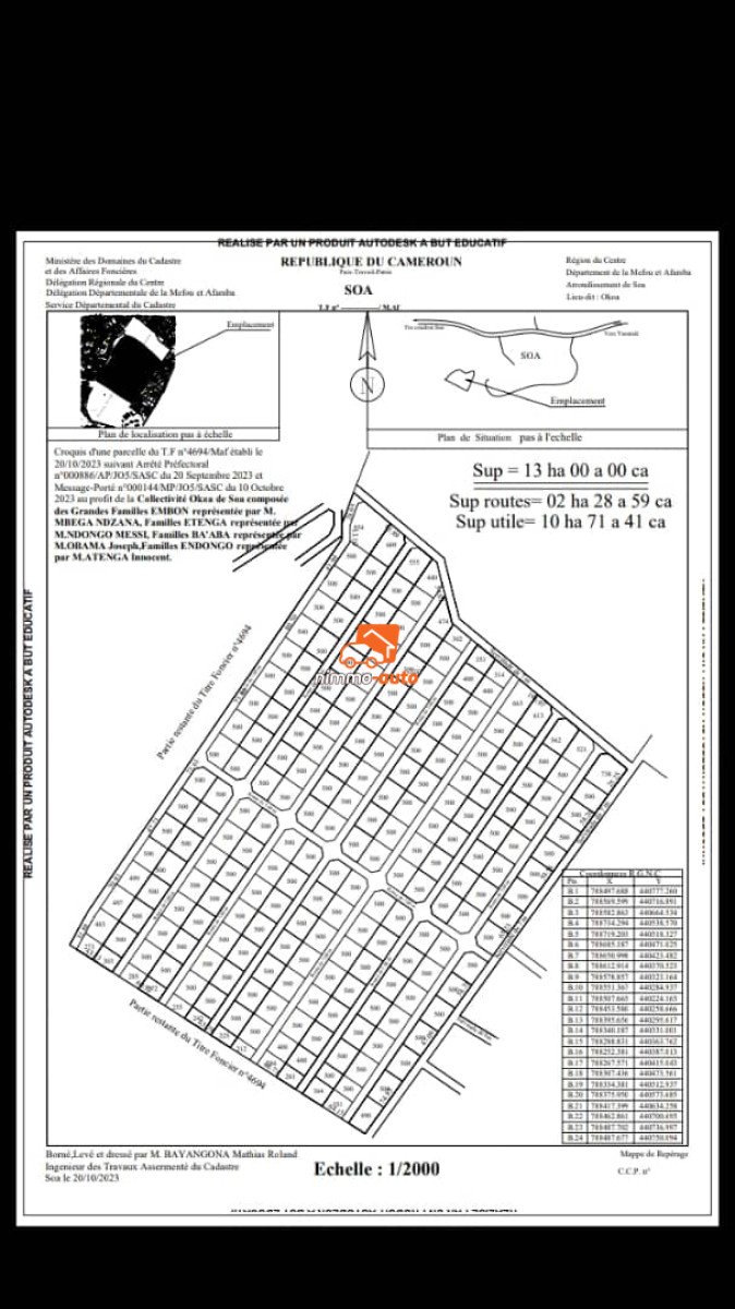 Plusieurs lots de terrain titré à Soa ville derrière la mairie à seulement 10m de la route principale a un prix cadeau de 20mil/m²