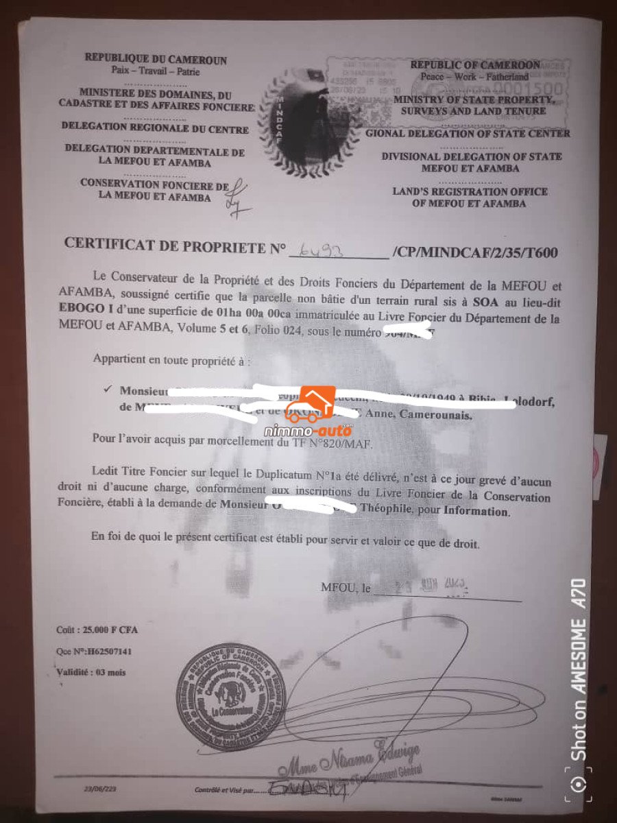 Deux terrains titrés de 500m² à Tsinga village très bien placé à 100m de l'axe principal goudronné avec un signataire unique. 23000fcfa/m²