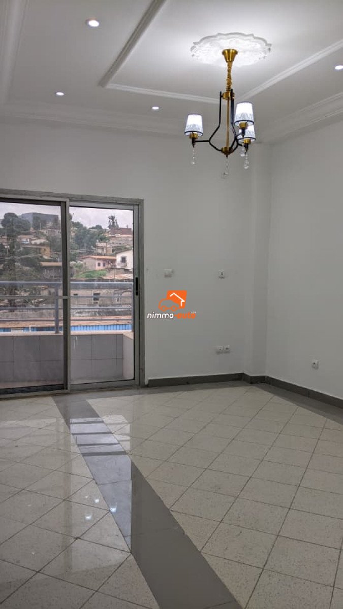 BUREAU A BASTOS Configurer comme suite : 1 grand salon avec baie vitré 1 grande cuisine 2 douches 1 chambre Balcon Buanderie A l'étage deuxième niveaux Lumière conteur prépayé Eau forage Prix : 350.000f