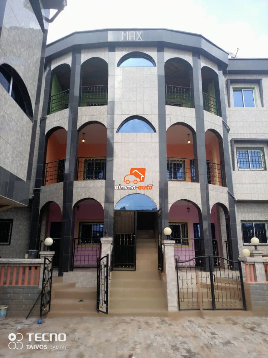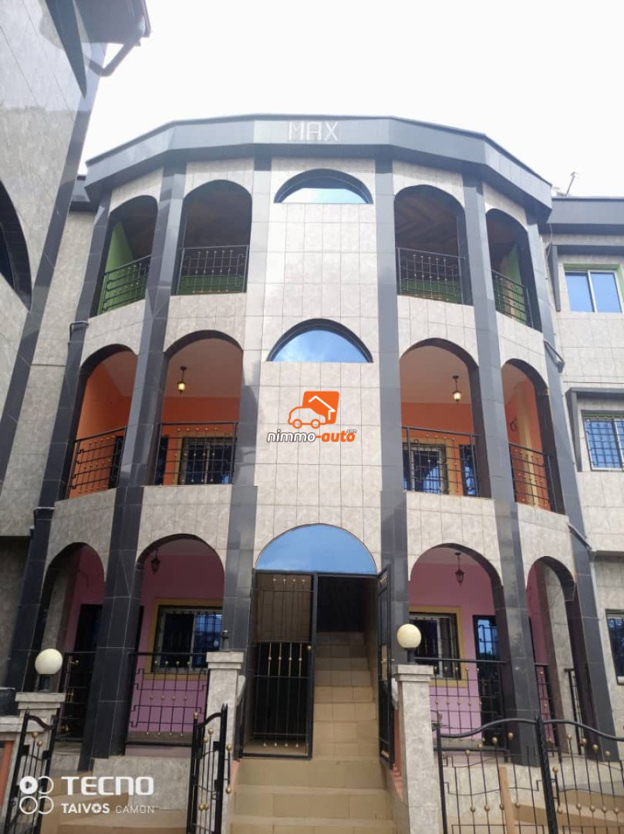 Deux Magnifique Immeubles Flambant-neufs à vendre sur 400m² Titrés dans la Clôture situé au 10ème Arrêt Nkoabang -> 1er Immeuble R+2 : 06 Appartements Haut Standing (02 Chambres avec Placard, 02 Douches, 01 Grand Salon, 01 Cuisine avec Rangement et Magasin, 02 Balcons) -> 2ème Immeuble R+2 : 02 Studios Modernes Haut Standing 4Pièces Vastes avec Douche Externe pour visiteurs. -> 01 Forage d'eau bien entretenu + Château d'eau -> 01 Guéritte pour Gardien avec Chambre à coucher -> 01 Espace Vert + Boukarou -> 01 Coin pour Cuisine Externe -> Grand Parking pour 10 Voitures -> 01 Cour recouverte de Pavés -> Documents Disponibles et à Jour