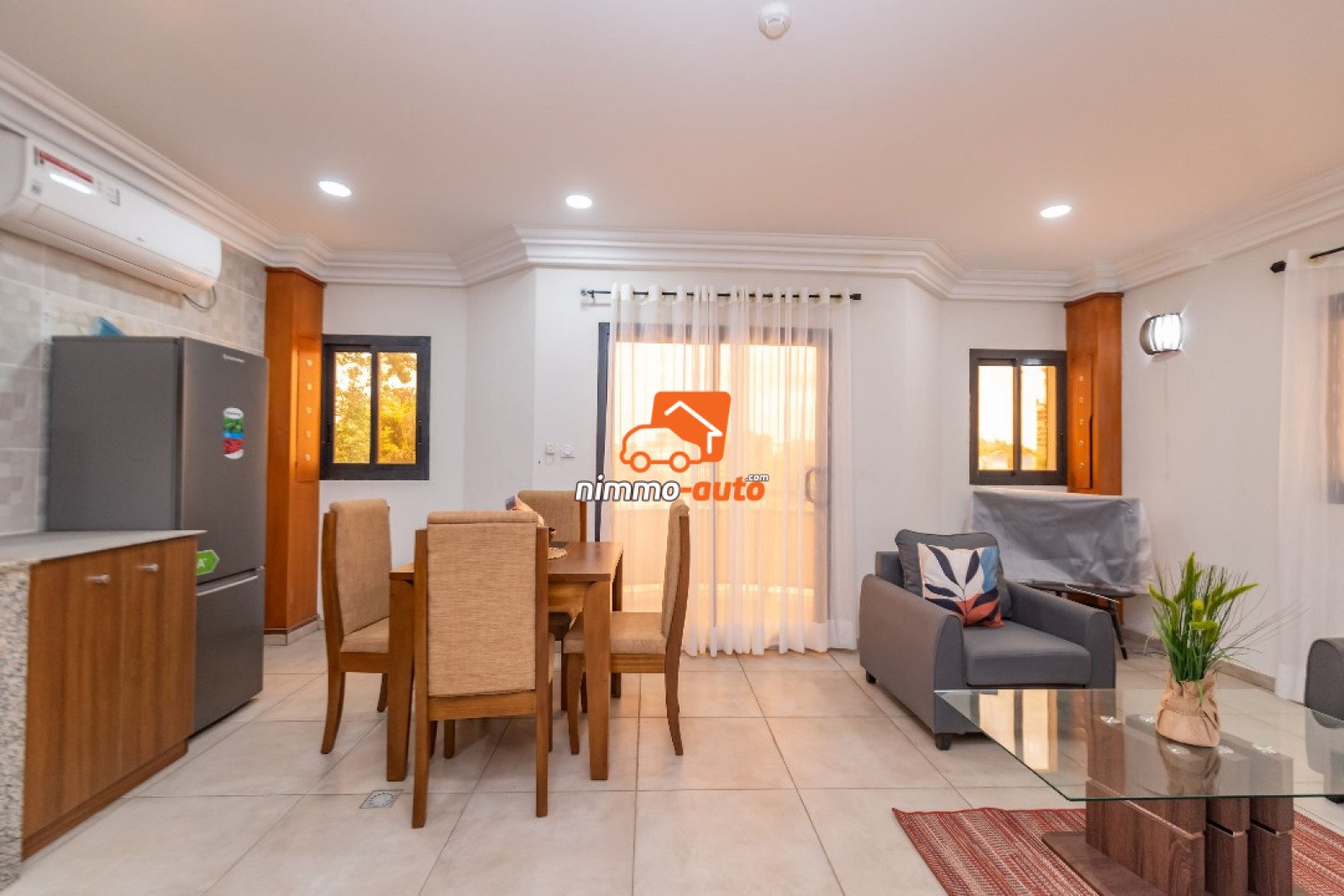 appartement meublé à bonanjo dans un cadre très calme et sécurisé à proximité de la route et des commodités il comprend: un séjour lumineux , 2 chambres confortables ayant chacune une salle d'eau ; 1cuisine équipée et fonctionnelle ,1 WC pour visiteur, électricité garantie grâce au groupe électrogène , service de gardiennage 24h/24,parking sécurisé