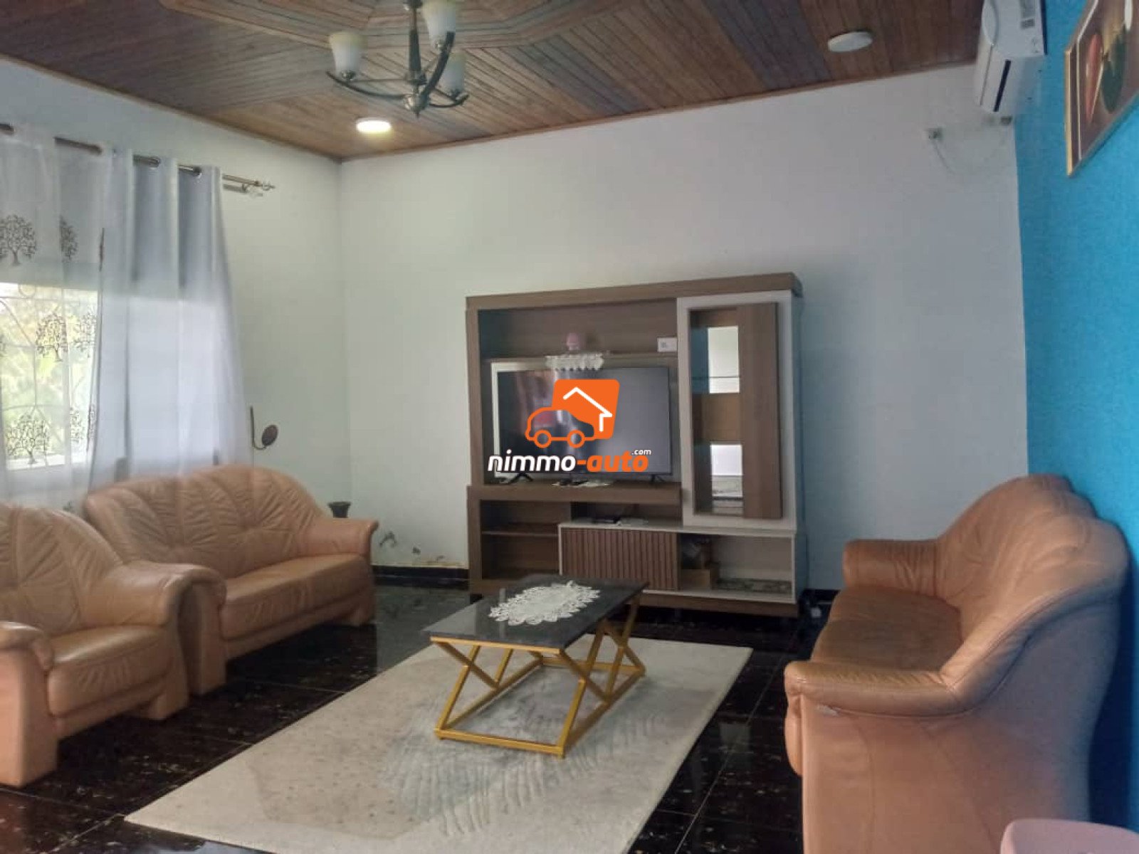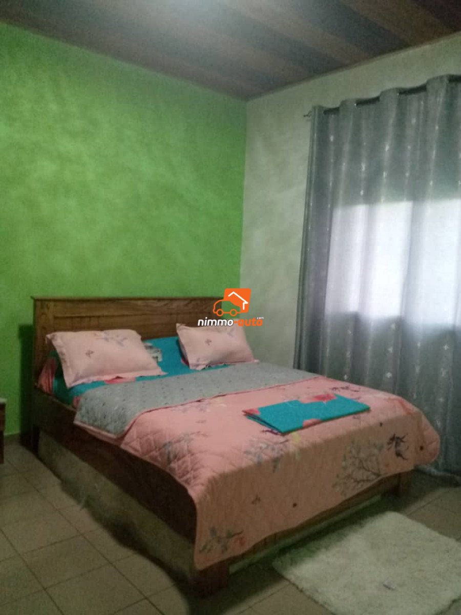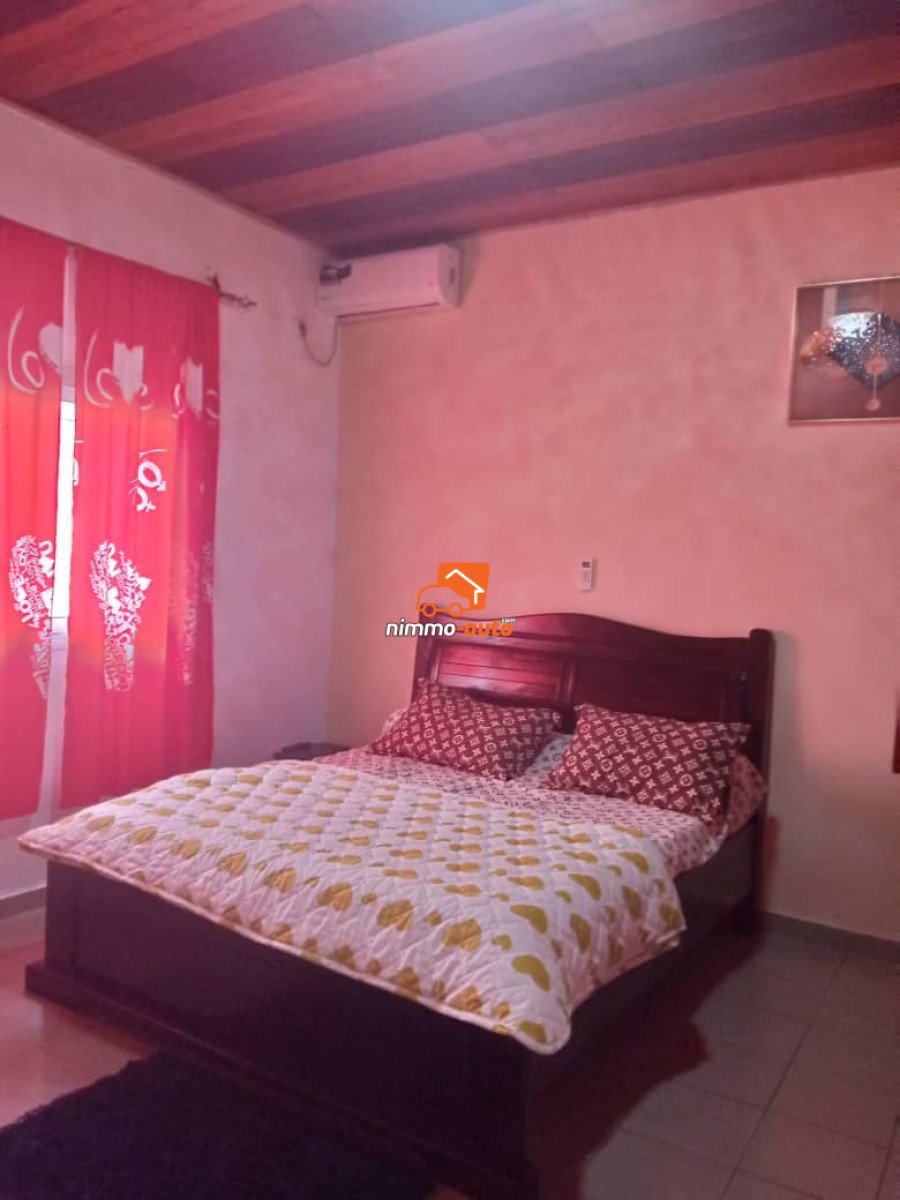 Appartement meublé, situé à Ngoye. Très proche de la route principale goudronnée Caractéristiques et commodités : 1 séjour spacieux et climatisé (5m de longueur et 4m de largeur) 2 chambres climatisées (8m²) 1 cuisine 1 toilette Canal+ Prix par Nuitée : 60 000fcfa