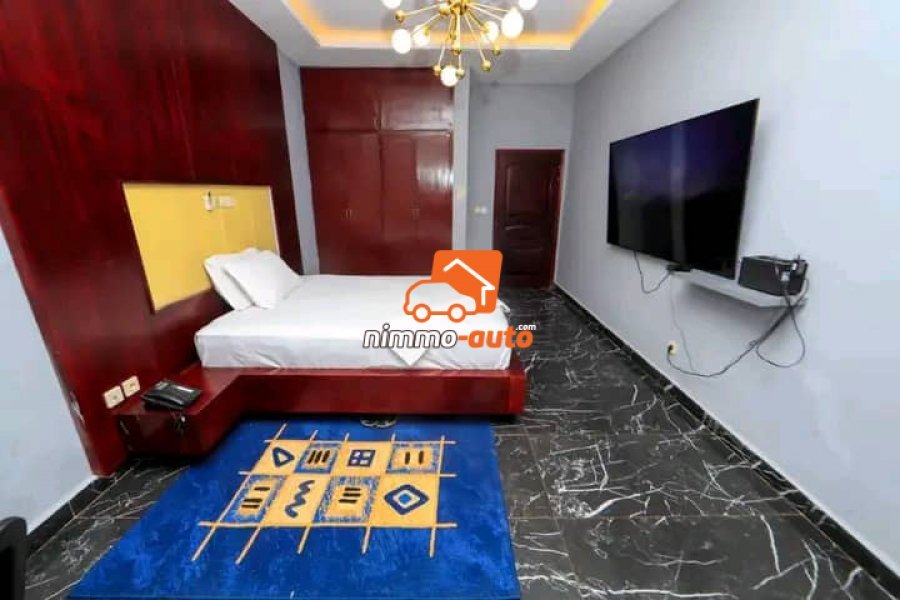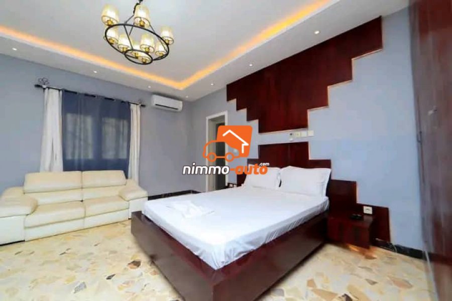 Villa meublée à vendre à Elig-essono. Superficie totale 1000m² construite sur 350m² 7chambres, 8douches, 1bar, 1salon, 1grand parking, 1piscine, 1salon de billard à 350millions.