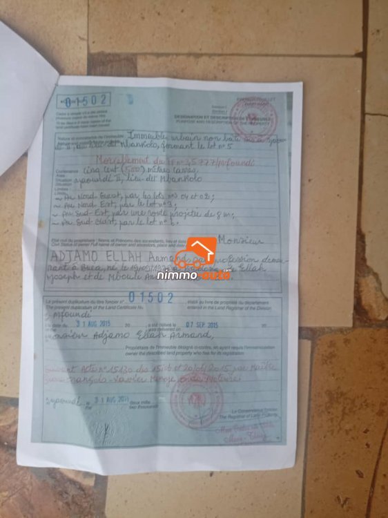 Terrain titré de 500m² très bien placé à vendre à Mbankolo petit village, eau et lumière. Prix 60000F/m²